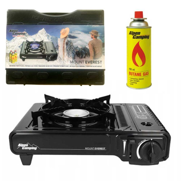 Balení plynový vařič Alpen Camping na kartuše obsahuje :