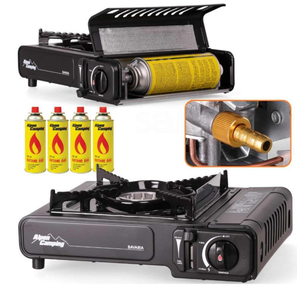 Plynový vařič na 2 kg láhev + 4 kartuše + deska na grilováníPlynový vařič na bombu i kartuše 2v1Lze ..