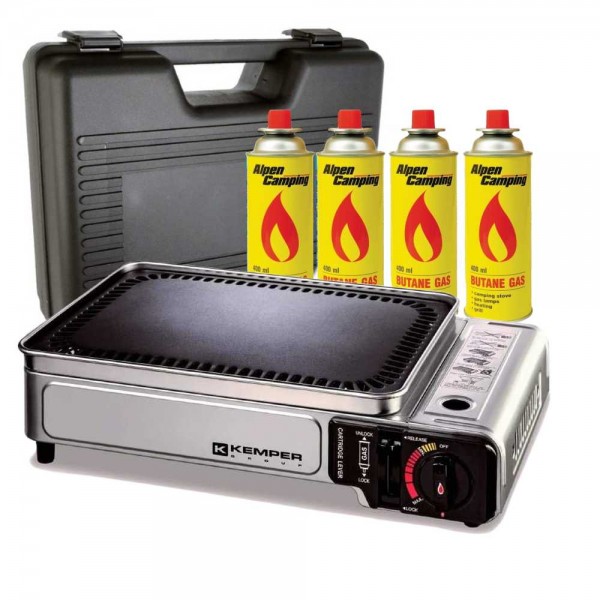 Přenosný gril + 12 kartušíVhodné pro rychlé grilování na vašich cestách.Kempingový stolní gril v kuf..