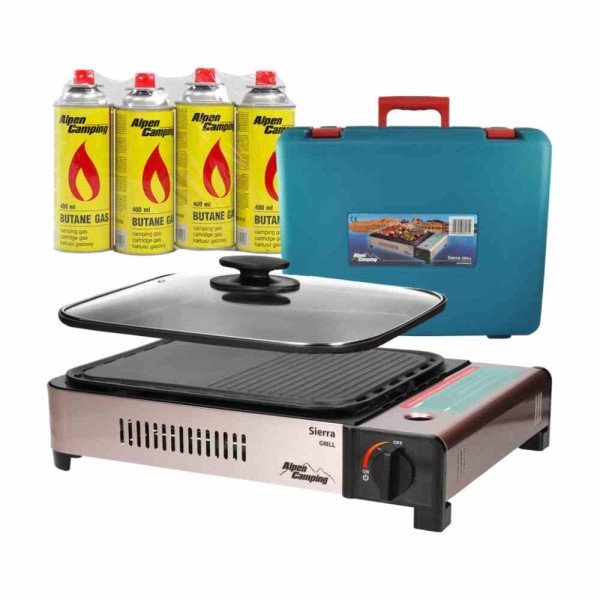 Kempingový plynový gril + 4 kartuše